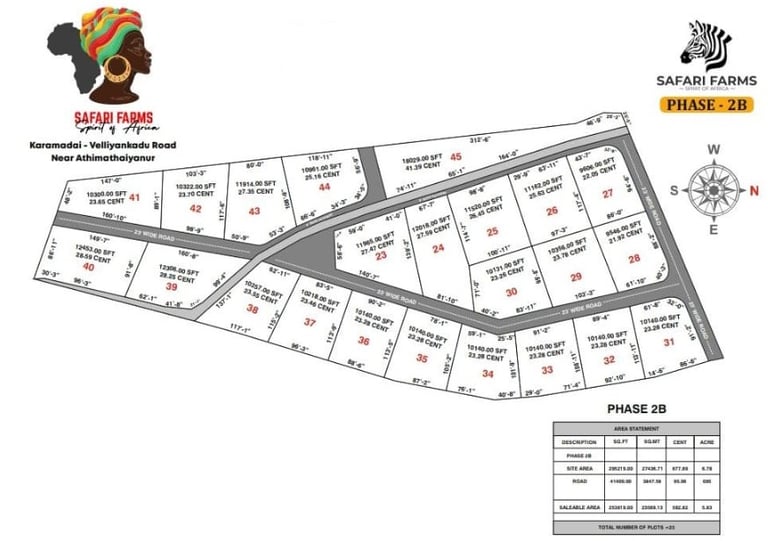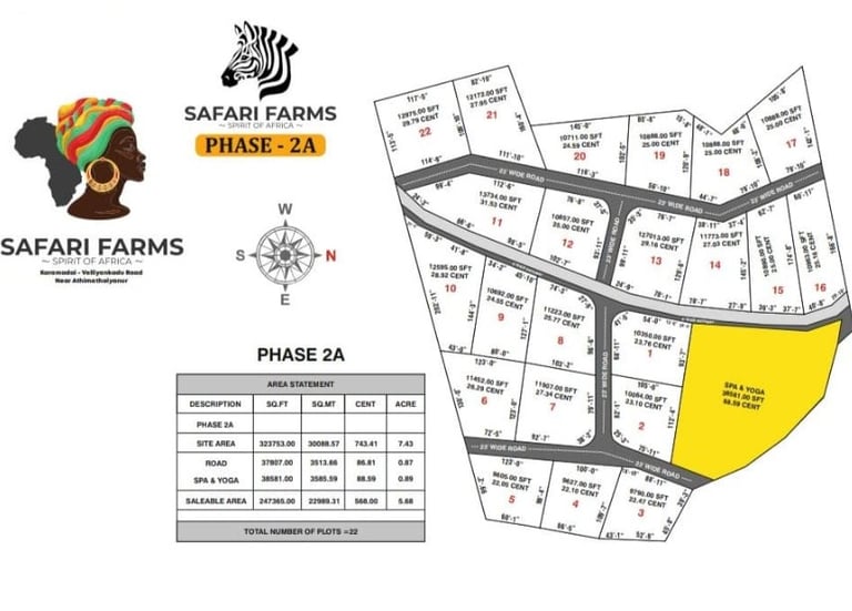 Safari Farms is an exclusive, Gated farmland community located in Velliangadu, Karamadai, on the pristine western outskirts of Coimbatore City. Sprawled across 55 acres of sylvan landscape, this standalone project offers a rare blend of natural elegance and investment opportunity perfectly set against the majestic backdrop of the Western Ghats.